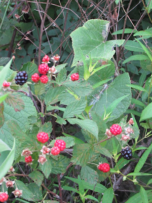 The berry bushes are growing through the wooded area in a nice strip the entire acre long! |